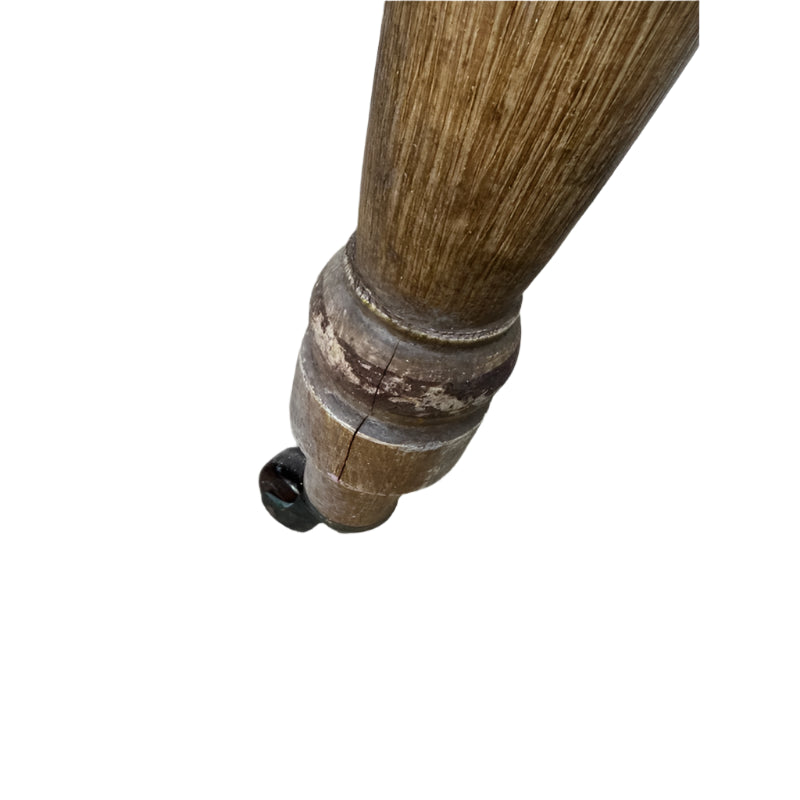 Marble top is not cracked, though it has a brownish stain (see pictures) and small chips in the middle. These could be polished for a cleaner appearance. Please note, the marble is not glued or attached to the base, it rests securely on top.