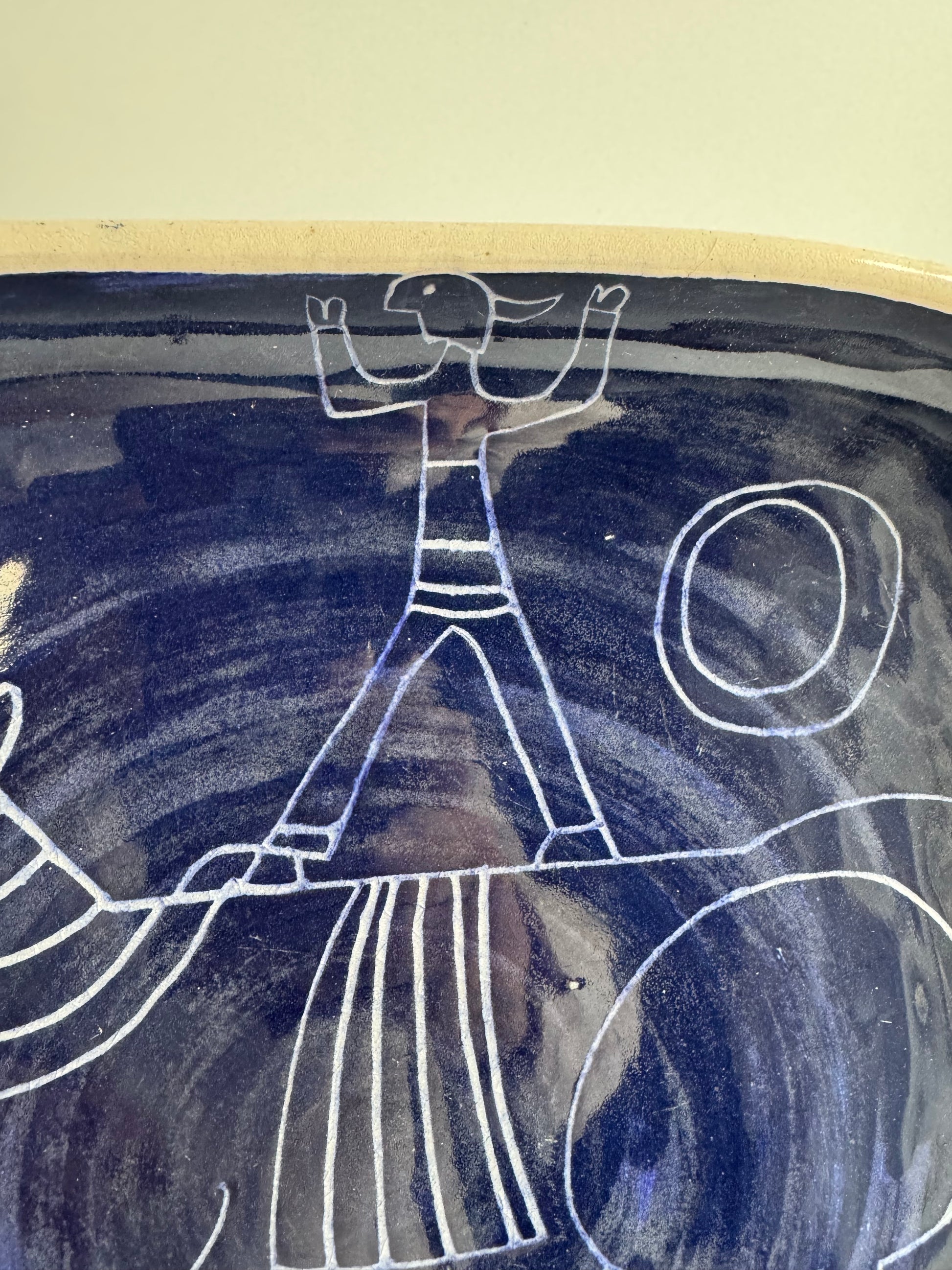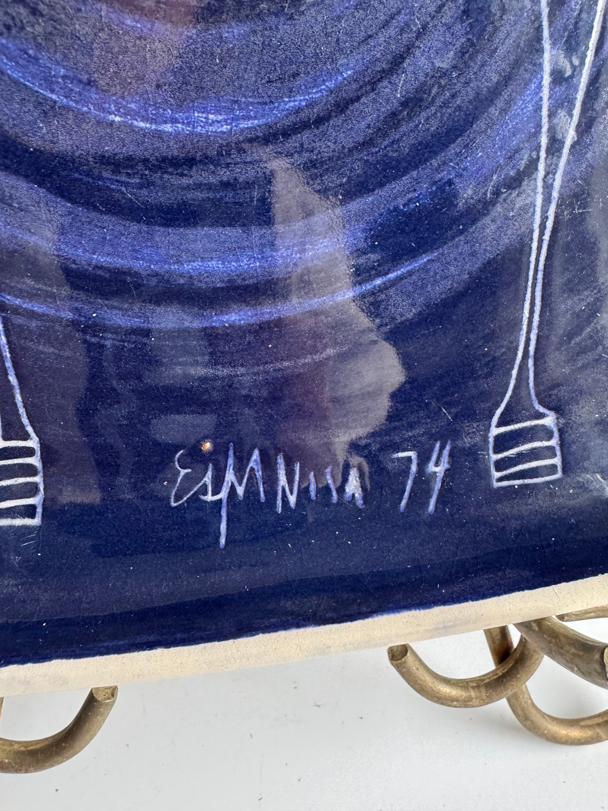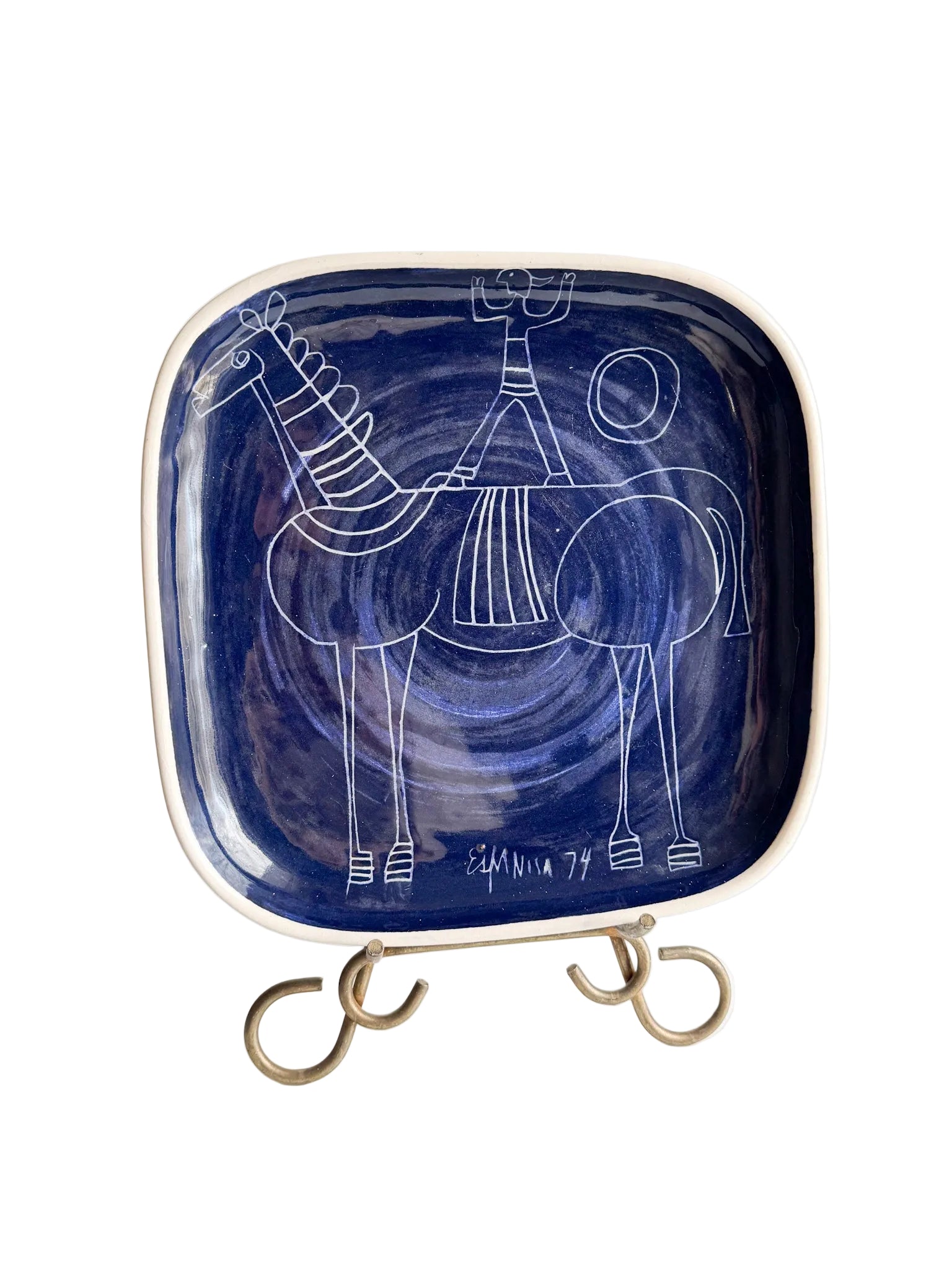 Vintage Scandinavian Modern Blue Ceramic Plate, Signed and Dated 1974